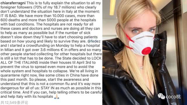 还一早就戴上了口罩并发布长文,告诉大家这个病毒的危害以及逆天程度。 呼吁大家不要轻视它,一定要做好个人防护。