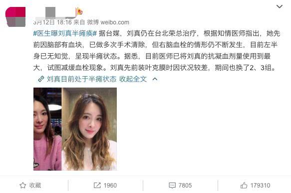 果不其然,3月12号,有消息爆出刘真半瘫痪。