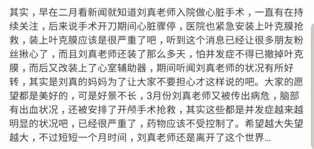 不久,刘真老公再度发文,称刘真需要进行“换心”手术,已经在排队当中。