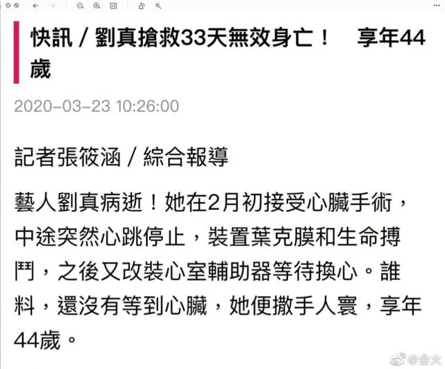 据台媒报道,2月19号刘真因心脏手术过程中出现意外。