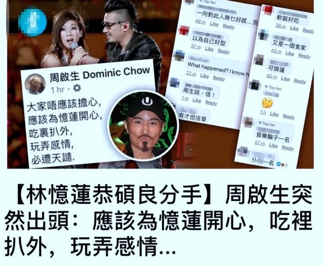 2月8日,资深音乐人周启生突然更新社交网,为林忆莲被恭硕良抛弃而出头。