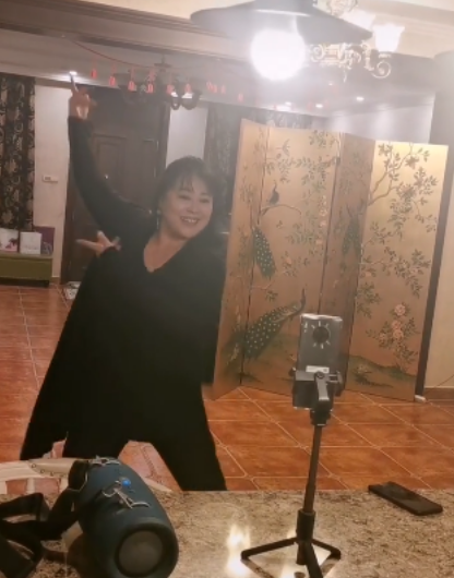 李菁菁虽然身材偏丰腴,但她的舞姿曼妙妖娆,身段柔软,动作也非常灵活。看来她本人很喜欢舞蹈,平日应该也没少跳。