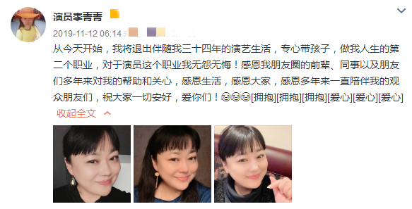 网友们之所以有这样的希望,是因为李菁菁在2019年11月时宣布退出娱乐圈,专心带孩子。