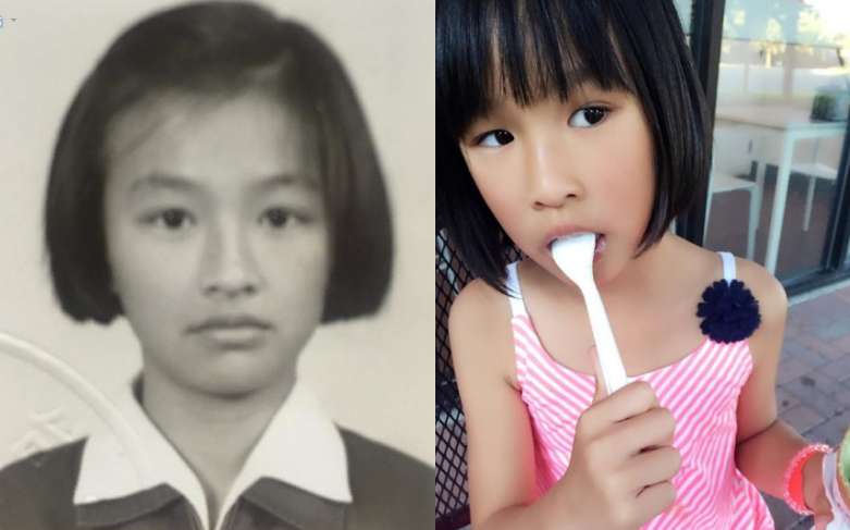 后来张庭晒童年照的回应,母女俩简直是一个模子刻出来的。