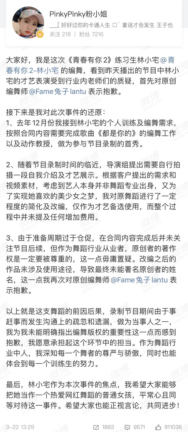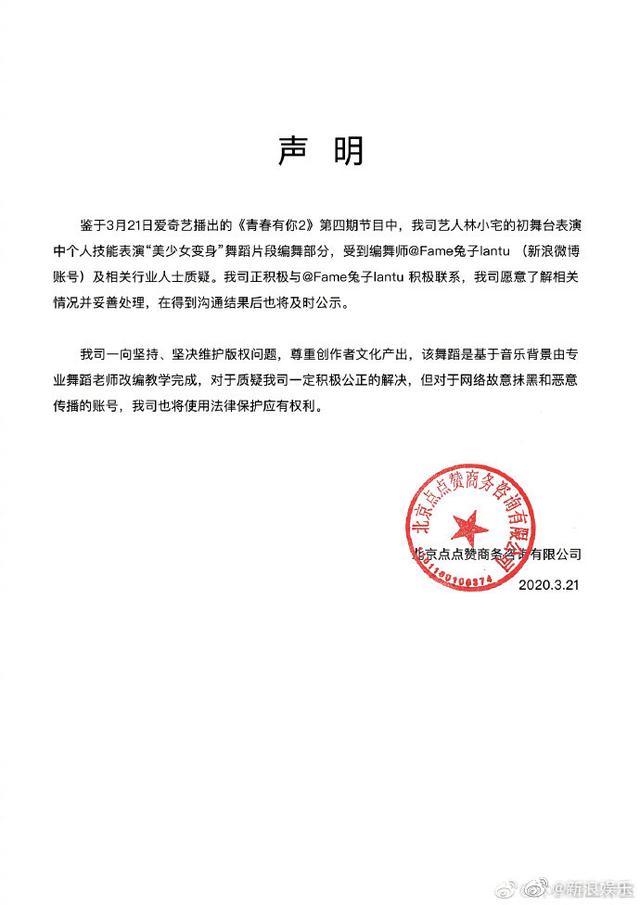 这两天林小宅在《青春有你2》的舞蹈表演作品受到了原创质