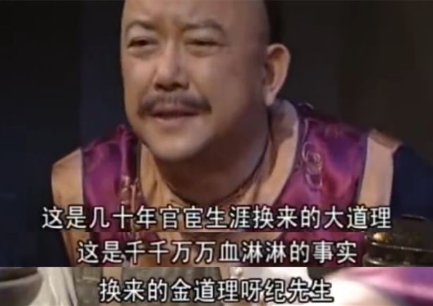 贪官毫不知耻的发言,配上王刚老师入木三分的演技,成了《铁齿铜牙纪晓岚》里流传最广的一段经典,至今看来都极尽讽刺意味。