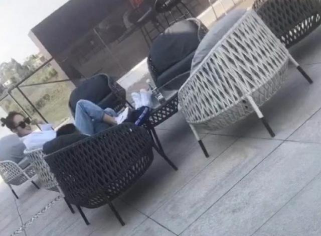 张嘉倪身穿牛仔裤搭配白色衬衫,扎着丸子头不停的甜笑,可见这次买楼的张嘉倪确实很开心,心情大好的张嘉倪坐在室外的休息椅上,还不时的和旁边大儿子聊天,脚踩在桌子上的姿势也引来网友的争议。