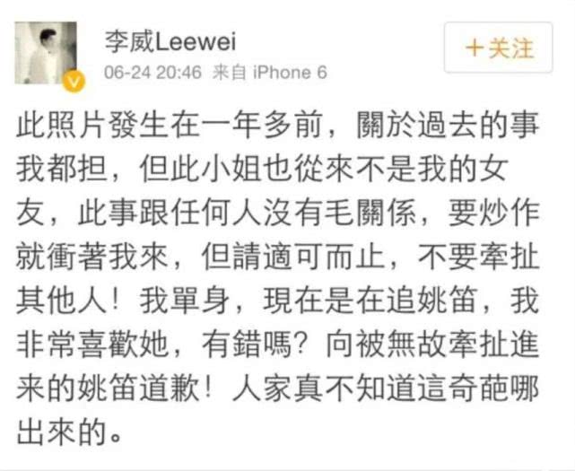 经历了“周一见”,又被爆插足,姚笛接连被爆丑闻,有记者联系姚笛方却一直联系不上。联系李威后,李威方表示不清楚李威的感情状况,但可以肯定的是杨子晴不是他前女友。