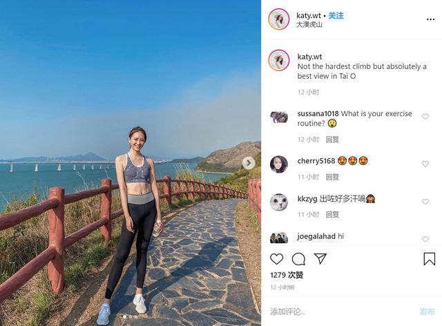 近日,Katy由于特殊时期全面停工,在家闲不住的她时不时会约上好友一起去登山,呼吸新鲜空气。今日她又晒出登山照,并配文称:“不是最难攀登的山,但绝对是大澳最好的风景。”