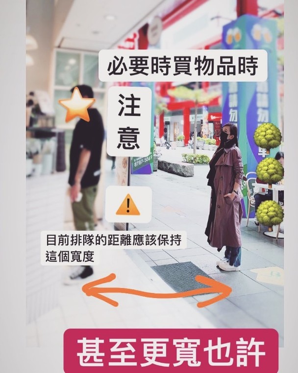 随后,她也晒出当时自己排队结账时的照片,亲自为大家示范目前该如何保持适当的距离,接着更是发布视频,呼吁大家应该遵守政府的政策规范,并呼吁大家“请尽力之后,再告诉我‘听天命’”,更是直言大家如果没照顾好自己和家人“你就是加害者,所以请管好你自己。”