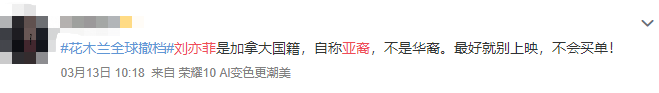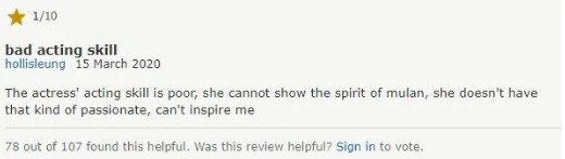 “女主角的演技简直遭透了,表现不出木兰精神。”