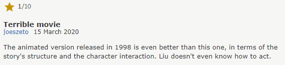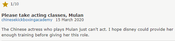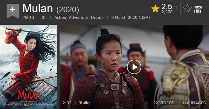 大批用户涌入IMDb的《花木兰》页面,猛刷一星。