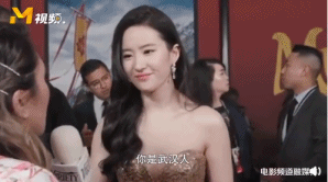 首映礼上,刘亦菲接受《Variety》采访,被问木兰的座右铭“忠、勇、真”对她意味着什么。