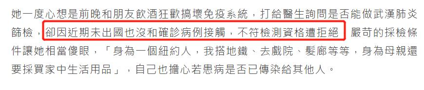 这样的筛检条件令黛比玛扎十分傻眼,她表示:“身为一个纽约人,我搭地铁、去剧院,去造型店等等,身为母亲还要外出买家中生活用品。"她也担心自己如果患病会传染给家人或者朋友。