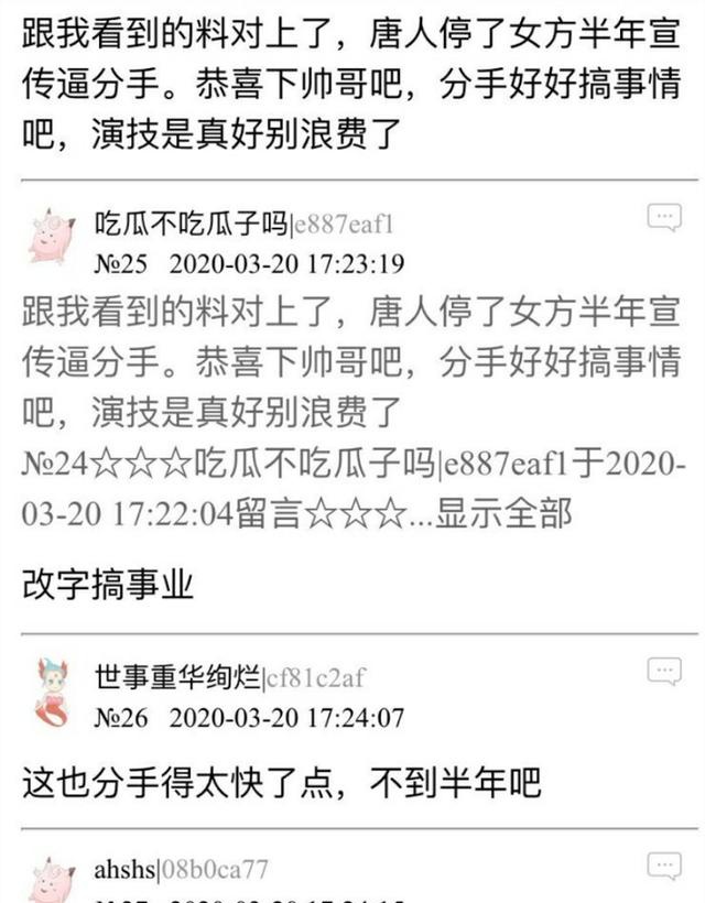 有网友爆料称胡冰卿的经纪公司为了逼女方分手停掉了她半年的宣传。
