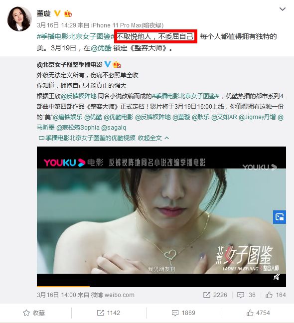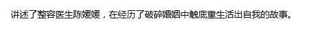 电影里,陈媛媛(董璇 饰)是一位在业内有着极高口碑的美容整形专家。