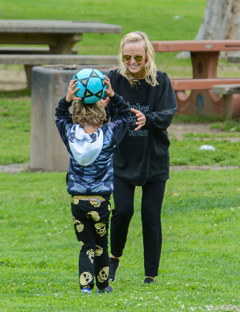 当地时间2002年3月20日,玛琳·阿克曼(Malin Akerman)与儿子现身草坪游