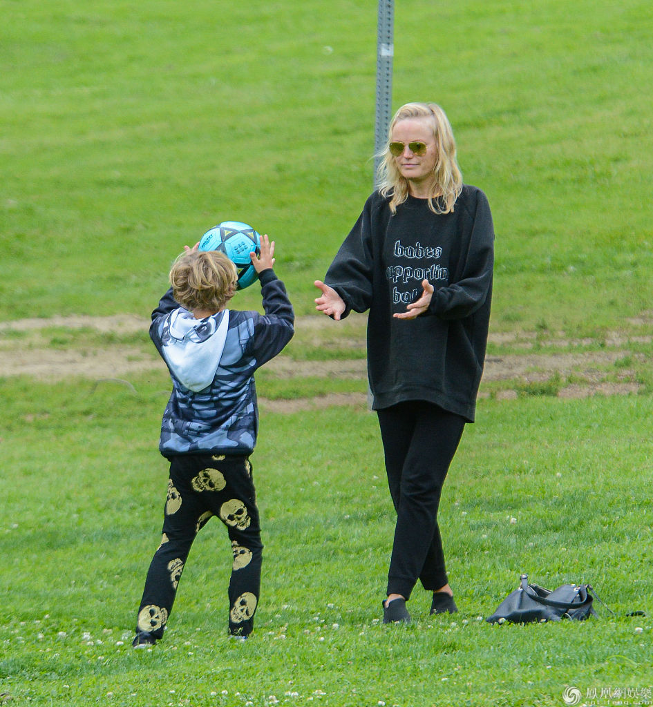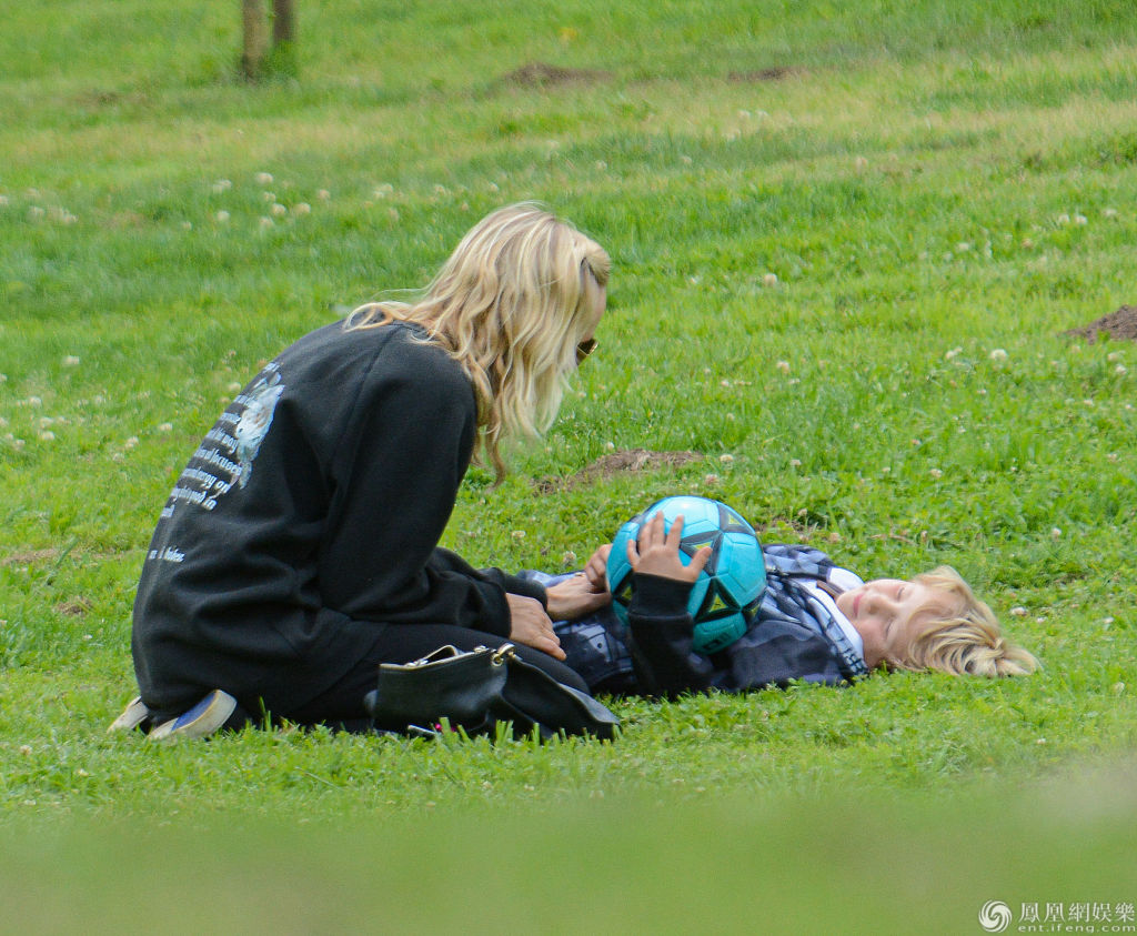 玛琳·阿克曼陪儿子玩耍,画面温馨。