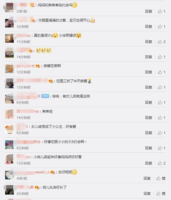 其他网友也纷纷留言:“女儿被宠成了小公主,好有爱”、“好像在跟小小的大S约会啊~”、“真的是很大s,小徐熙媛呀”,也有网友打趣称“菲哥,我们希箖呢?????”、“妈妈和弟弟单独约会吗”。