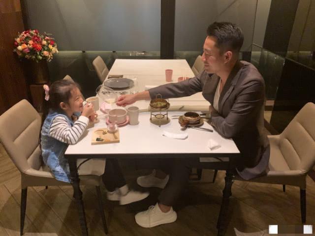 坐在爸爸对面的小玥儿扎着可爱的马尾,久违出镜的小妮子看着又长大了不少,端着杯子害羞地看着爸爸,嘴角弯弯的模样俏丽又可人。