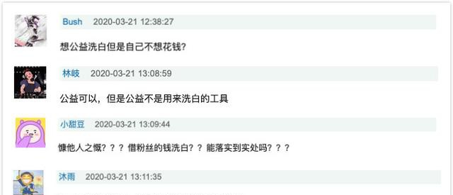 有不少网友认为公益项目组是肖战团队的洗白工具,因为肖战粉丝公益项目组的官宣博文里有一句“希望带动所有支持肖战的朋友,将爱意凝聚成公益的力量”,更是遭到网友吐槽“借粉丝的钱洗白”“想做公益自己却不想花钱?”