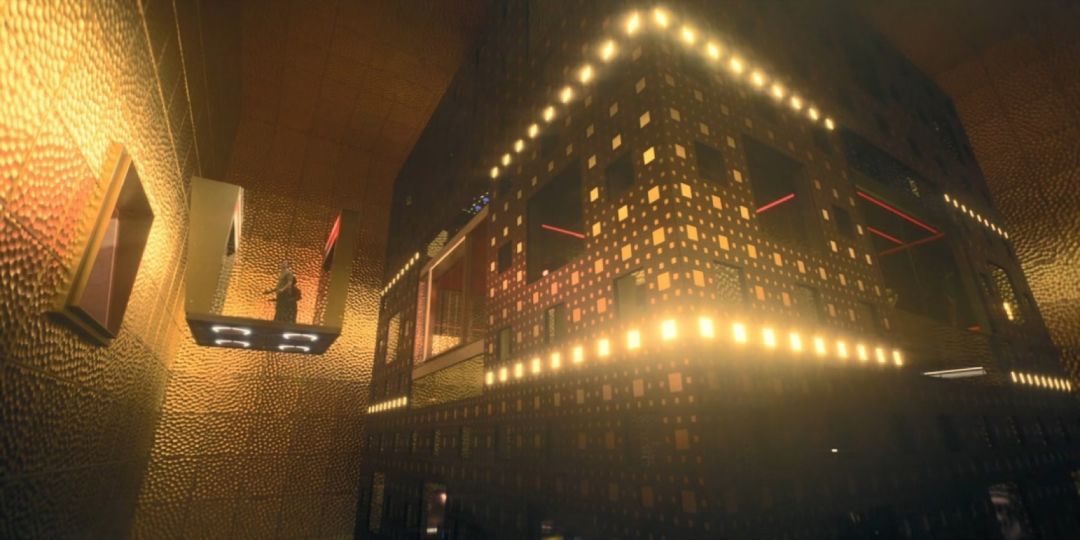 开拓者部门所在的建筑两侧围绕着金色的方尖碑,让人想起《2001太空漫游》里的巨石,建筑物内部是一个漂浮的发光立方体,由磁场高高举起,如此精巧,又如此岌岌可危,以至于其中的每个场景都充满着恐惧的暗流,仿佛随时可能坠毁。