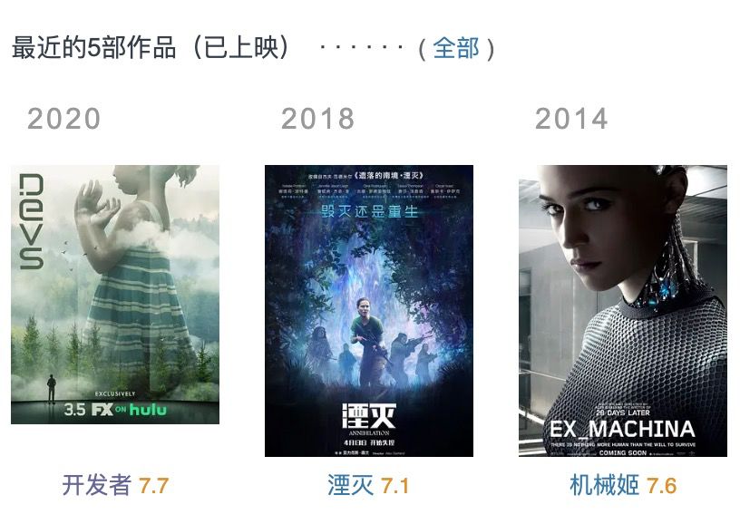 2014年凭借导演处女作《机械姬》获得奥斯卡最佳原创剧本提名,第二部电影作品《湮灭》改编自同名小说,上映后也因其视觉效果和故事内核受到好评。