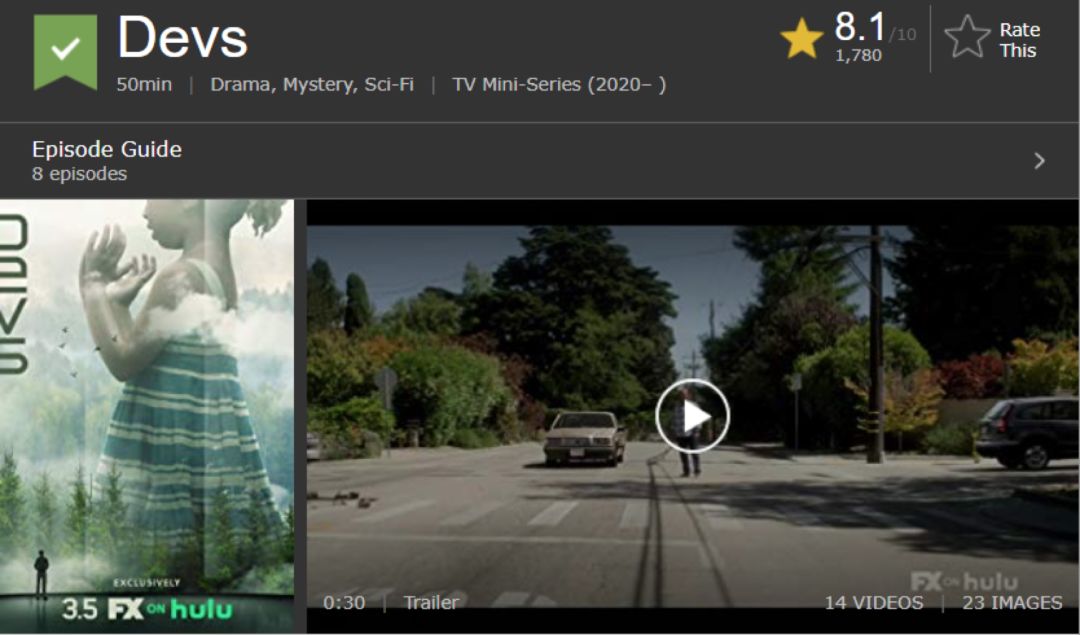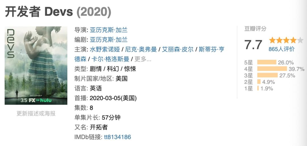 《开拓者》一共八集,目前已播出四集,IMDB暂时处于8.1分。