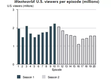 △ 蓝色框为第一季收视人数情况,灰色框代表第二季每集收视人数情况