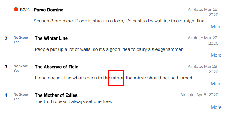 第一季首集:豆瓣9.4,IMDb9.1,烂番茄新鲜度100%。