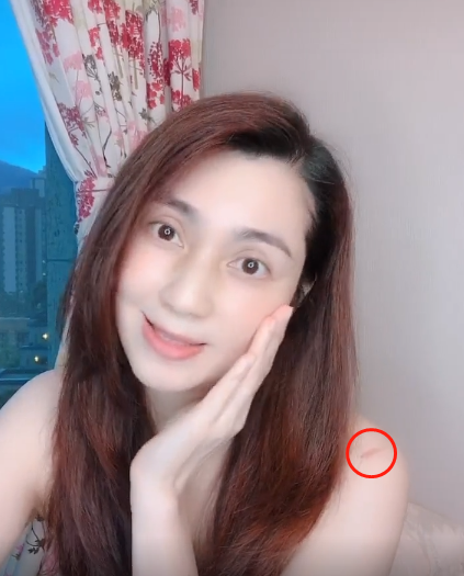 但有眼尖的网友指出,洪欣的左胳膊处有一处明显的淤青。