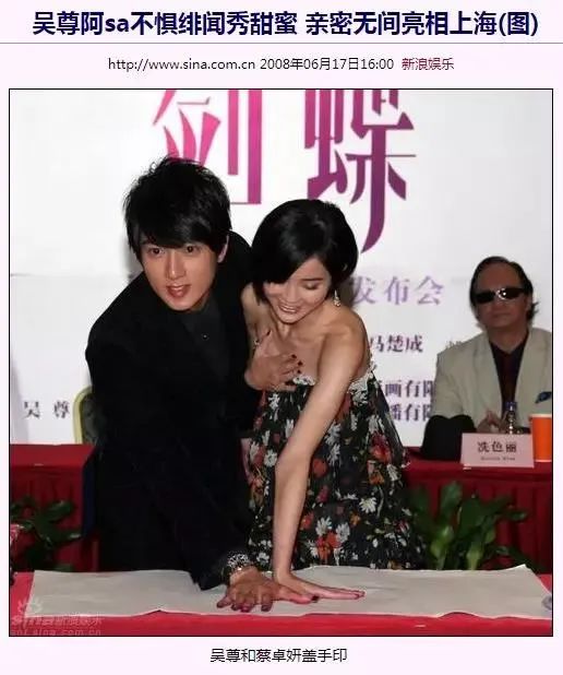 2006年,吴尊跟林依晨拍《东方茱丽叶》,两人经常在发布会现场做一些亲吻类的暧昧动作。