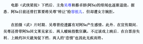 和阿sa宣传电影《剑蝶》时吴尊又炒了一波绯闻,后来拍摄《大武生》期间,他不仅透露曾对阿sa产生感情,还曾带她回文莱见家长;