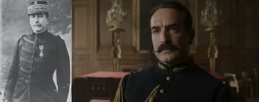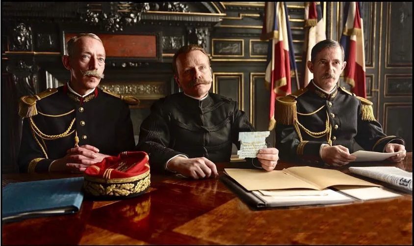 影片的第一场戏,还原了被定罪的德雷福斯在荣军院前,被革除军阶的屈辱过程,也引入了彼时深得军方大佬欢心的乔治·皮卡尔上校。