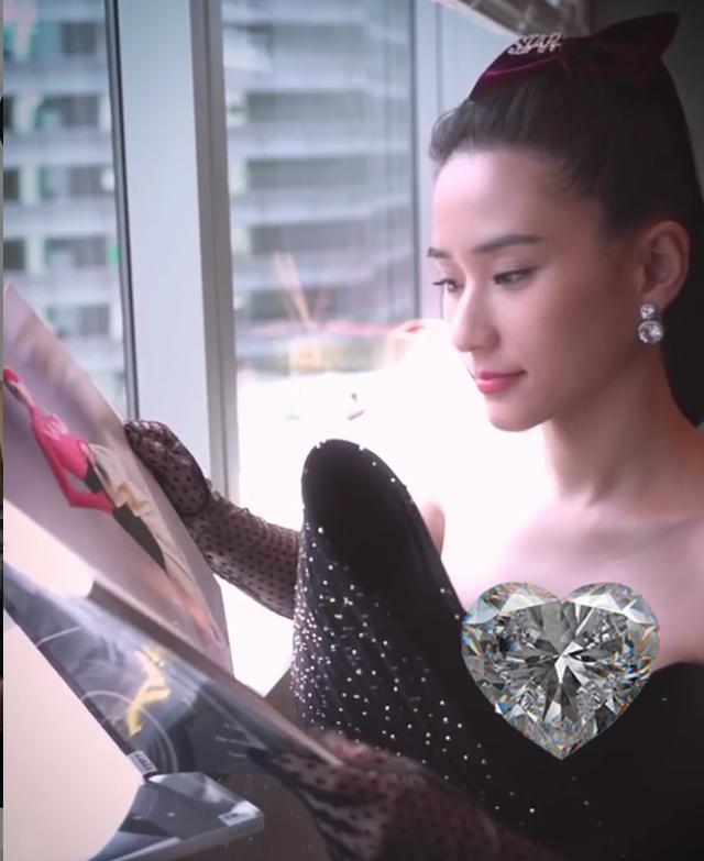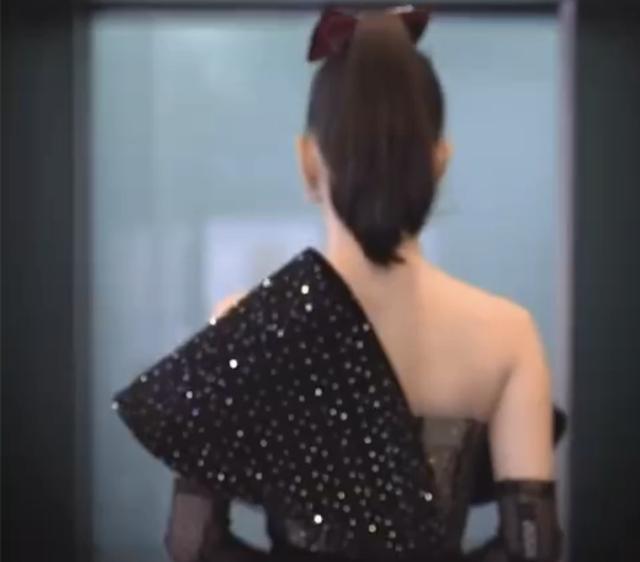 何超莲身穿一件黑色抹胸镶钻的礼裙,手戴黑纱手套,扎着高马尾,佩戴钻石耳环,秀出香肩美背,高贵性感,蝴蝶结的装饰又有几分俏皮。她化身职场女性,穿着华服穿梭在办公楼间,气场超强,不愧是赌王的千金啊!