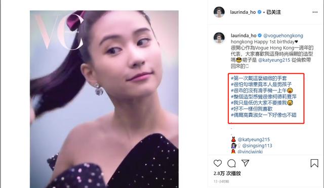 然而这一次大片中,何超莲一改常态,罕见走起了高贵淑女路线,连她本人都有些不适应,坦言第一次穿这么细致的手套,很怕勾坏,自嘲“毕竟本人是个男孩子”。她表示自己的整个造型感觉很像奥黛丽赫本,还强调“我只是低仿大家不要揍我”,这求生欲也是很强了!