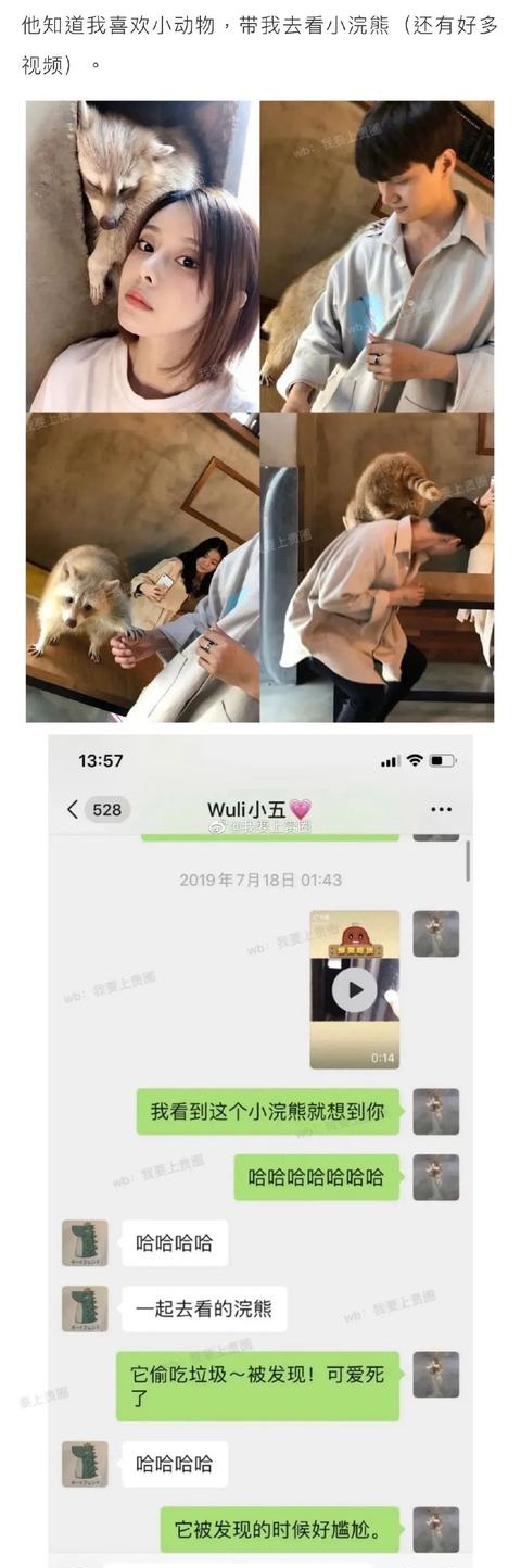 1 她在去年3月份认识并迅速在一起,为了避开媒体注意他们选择在韩国约会,小五在女生看来就是和她谈地下恋爱,两人去过酒吧、动物园等地方打过卡,有图为证,并且女生还晒出了两人不少聊天记录。