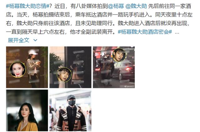 近日,杨幂和魏大勋被拍到前后脚前往上海同一家酒店,二人彻夜未出,直到第二天早晨六点左右,魏大勋包裹严实,独自一人低调离开,疑似秘密约会。
