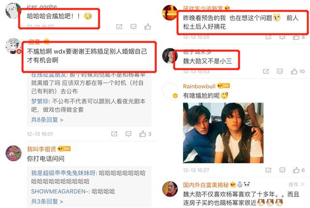 最后,大家一起感受一下评论区的风言风语,魏大勋难道真的要感谢一下王鸥吗?