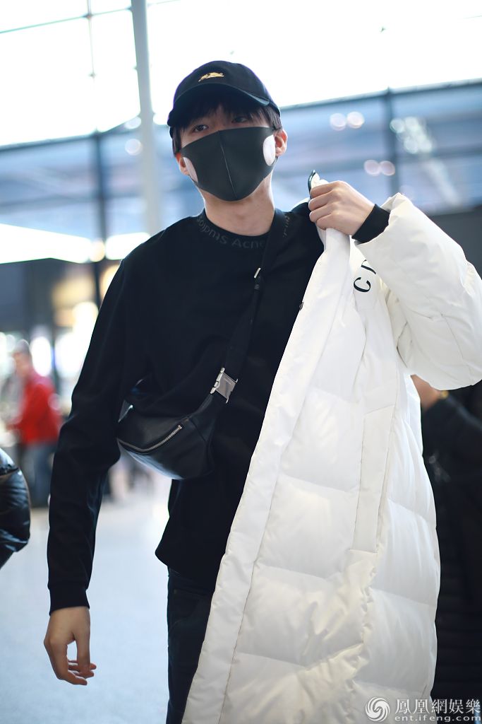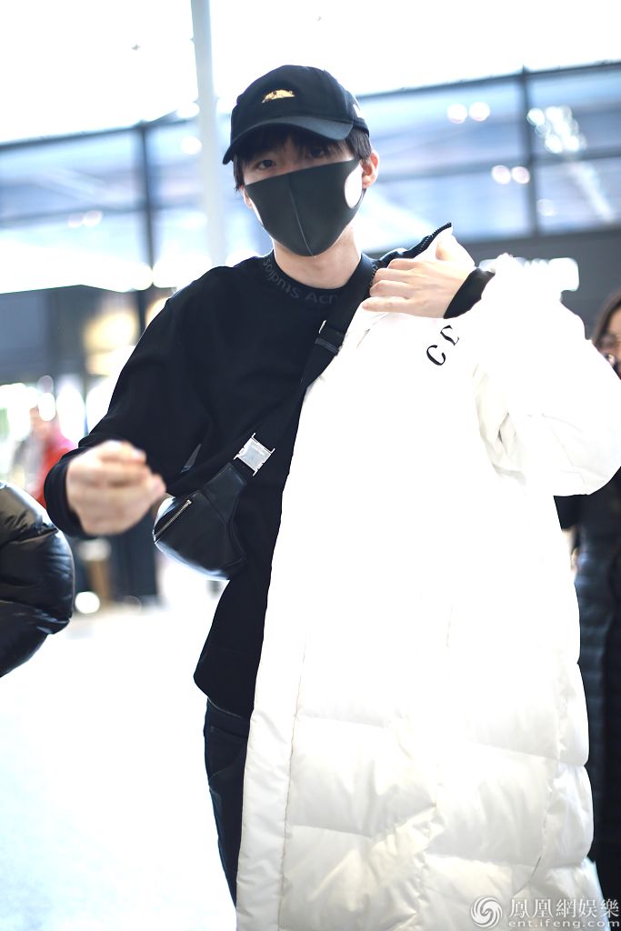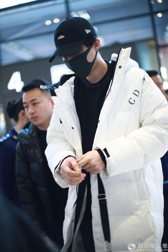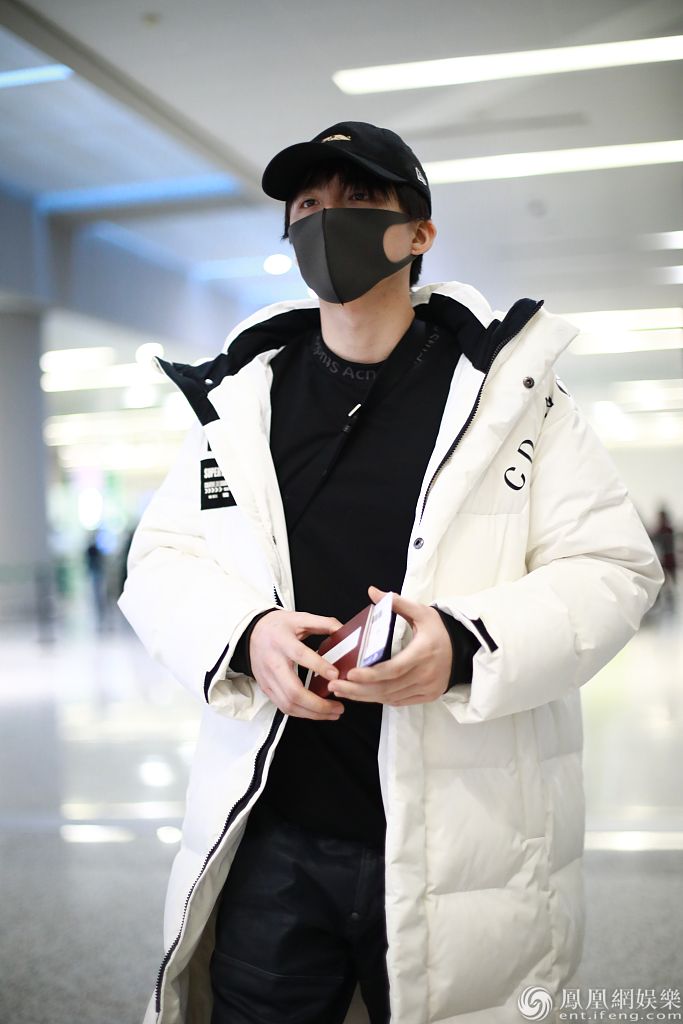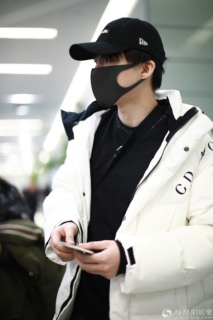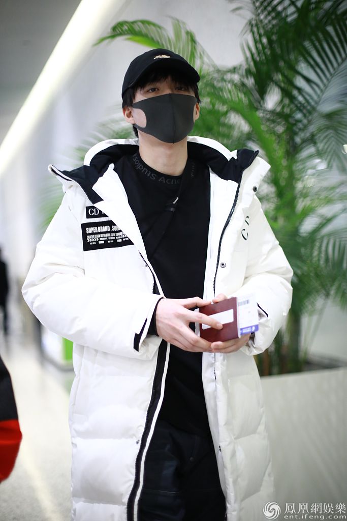 2019年12月13日,上海,刘宇宁现身机场。他戴黑色棒球帽和口罩,穿黑色卫衣外披白色长款羽绒服,边走边穿衣服,姿势“帅炸了