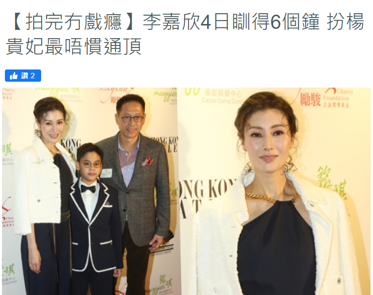 可能也是因为拍戏比较辛苦,所以李嘉欣表示并不会因为此次扮演“杨贵妃”而戏瘾发作。