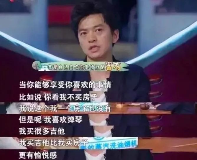“我不买房子,我一个房子都没有。但是我喜欢弹钢琴,我买很多吉他。我买吉他比我买房子更有愉悦感。”