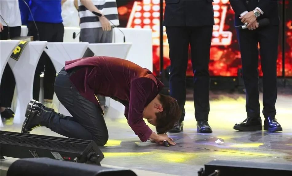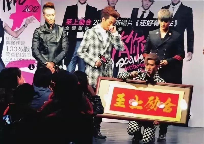 几天之后,刘洲成又在粉丝见面会现场跪地拿出缝合的牌匾,表示组合不会散。