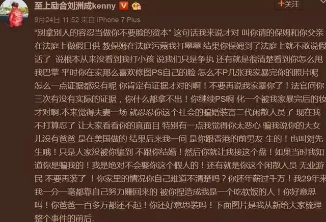 之后刘洲成又补充林苗身份作假、其父亲是老赖、私生女是和前男友所生、假怀孕、骗婚……这段声明的格式也是看的人头疼。