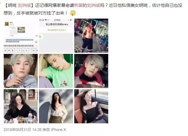 和前妻的舌战不了了之之后,2018年刘洲成又被爆出和网红聊骚。