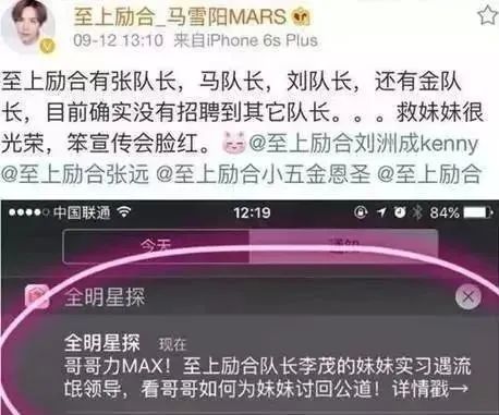 除此以外李茂还提到,自己退出组合后的16年9月,因为自己妹妹受到公司领导的猥亵,他在微博上公开发声,网友都表示支持,反倒是马雪阳不仅没有声援,还转发微博说“至上励合没有李茂这个人”,李茂不要趁机炒作宣传。