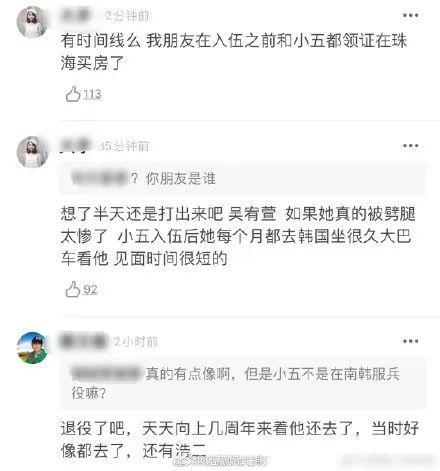两个人在一起后,吴宥萱从谈恋爱一直都陪着他到退伍,中间还几次去韩国看他。很多小五的粉丝那时候就知道他和吴宥萱在一起了,吴宥萱还会和小五的粉丝在微博上互动。