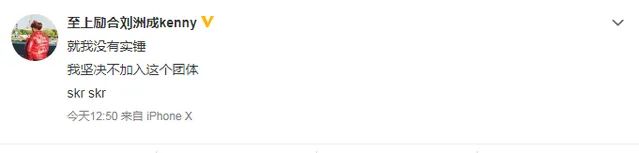 蒋劲夫后来曝出殴打女友后,有网友调侃他可以跟刘洲成组成“铁拳男孩”出道,刘洲成出来刷存在感表示自己没有实锤,拒绝加入。