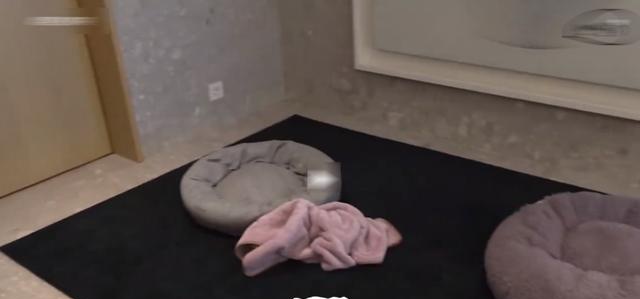 客厅里也有一块区域专门为了狗狗设置,韩艺瑟称之为狗狗的游乐场,铺有深绿色毛毯,十分柔软温馨。
