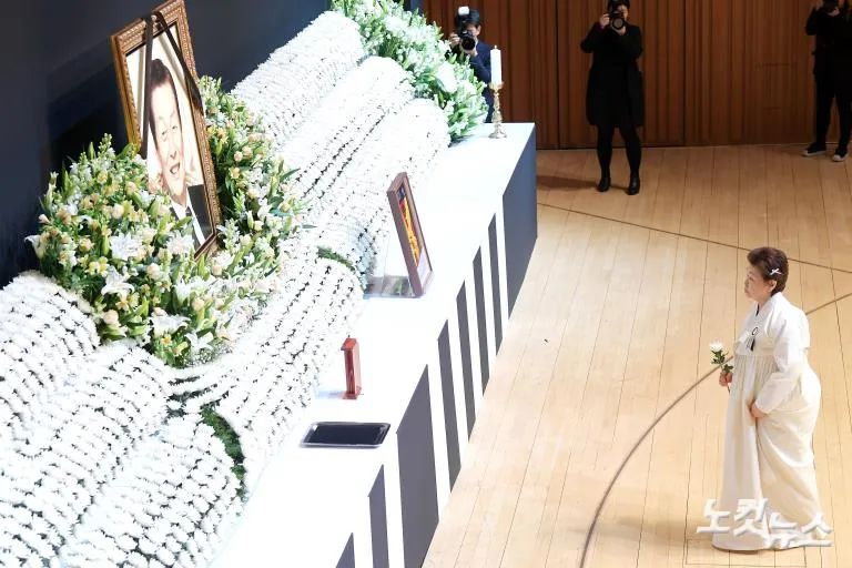 ▲ 今年1月20日,辛格浩去世后她再次出现在灵堂,备受媒体瞩目。